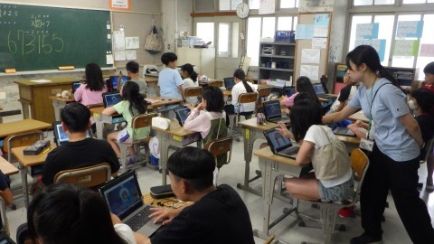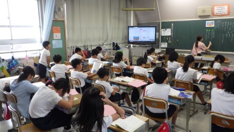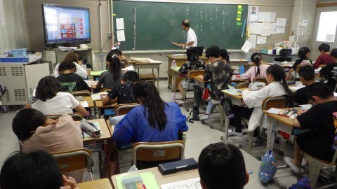 算数では,パソコンで先生が作った問題をクイズ形式で答えて,楽しそうに学習していました。