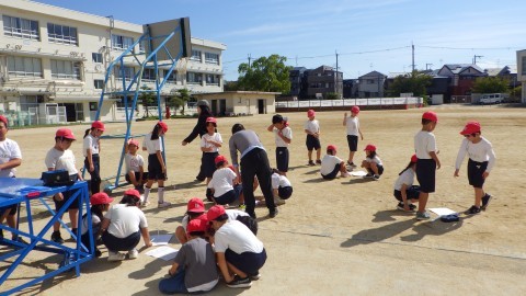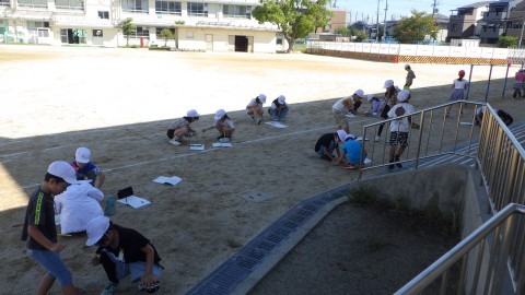 理科では,日なたと日かげの地面の温度を測る実験をしていました。