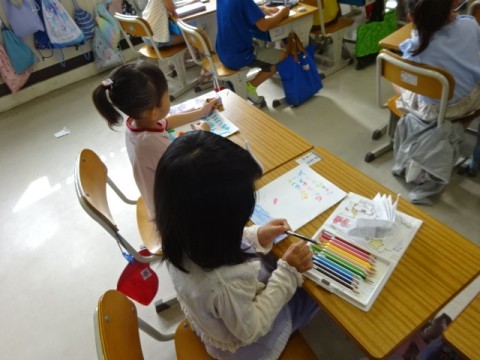 国語で自分の「かくれんぼずかん」を完成させました。図鑑の作者(自分)の名前を書き入れて終わりです。