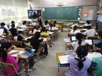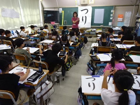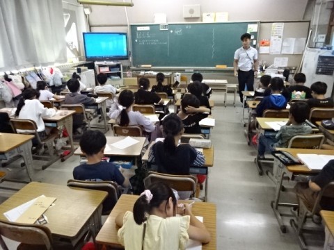 理科では「かげと太陽」の学習をしています。前に観察して記録した用紙をもとに,時刻とかげの位置や長さを確認しました。