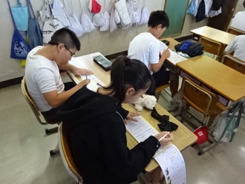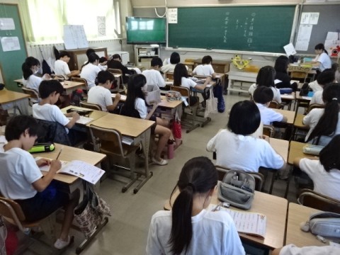 音楽では連合音楽会に向けて,「ふるさと」の歌唱練習を進めています。歌詞やソプラノとアルトの音を確認しながら歌いました。