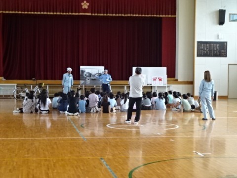 今日は,交通安全教室があり,4年生は体育館で自転車の乗り方を中心とした講話を聴きました。