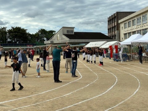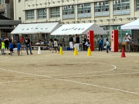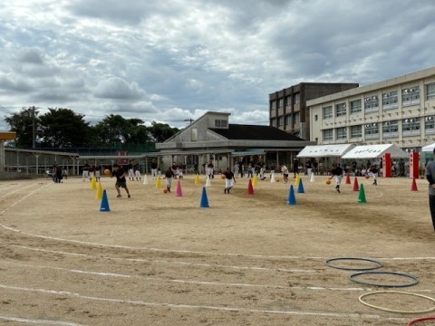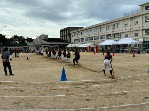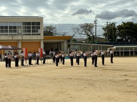 本校の運動場で「向丘校区ふれあい体育祭」が開催されました。前日からの降雨で運動場の状態が心配されましたが,予定通り午前9時にスタートできました。開会式,全体体操の後,音楽隊のマーチング演奏もありました。各競技に,校区の方々や子どもたち,保護者が参加して楽しい体育祭になりました。