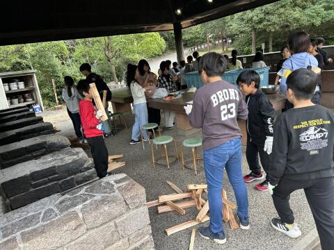 カレー作りが始まりました。班で役割を確認したり作り方を読んだりして、必要な物を撮りにいきます。