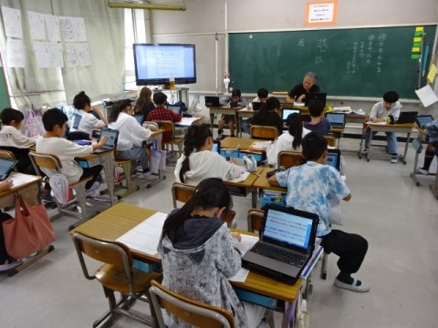 国語で「未来につなぐ工芸品」の学習をしています。要約に一人ひとりがまとめたものをグループ内で交流しました。また,工芸品について調べ学習をして新聞にまとる作業に取り掛かりました。