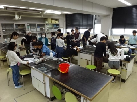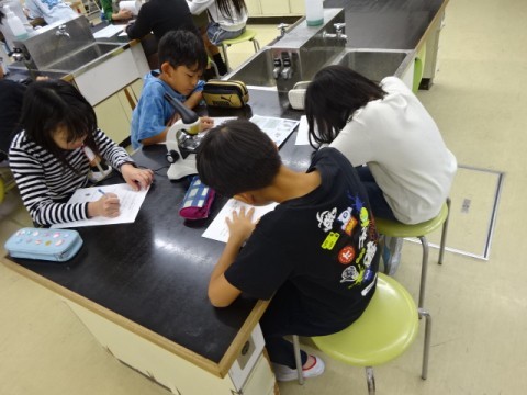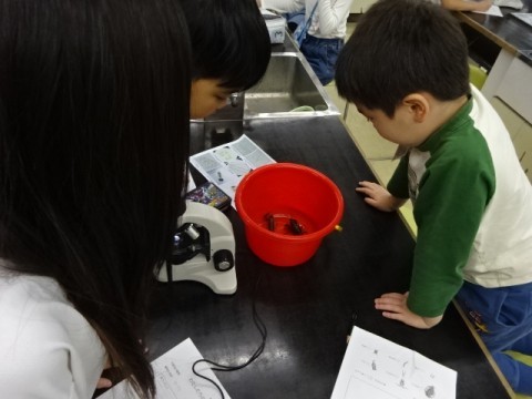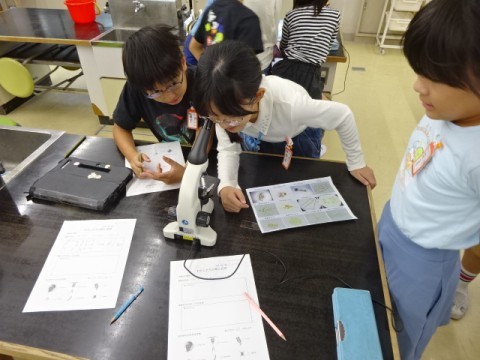 校区にある守屋池の植物や鳥,魚,昆虫等の紹介をしてくださったり,守屋池にいるプランクトンを顕微鏡で見せてくださったりしました。