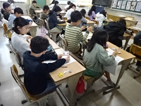 林間学校を振り返って新聞づくりに取り組みました。代表的な思い出をいくつかにしぼって載せる内容を決め,先生が用意してくれた写真も使いながら作業を進めていきました。