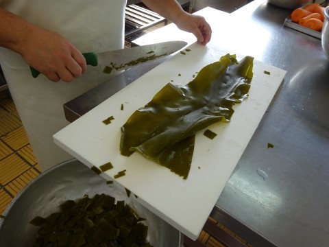 「昆布と削りぶしでだしをとりました。その昆布を切っておでんに入れています。」