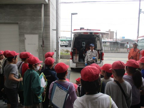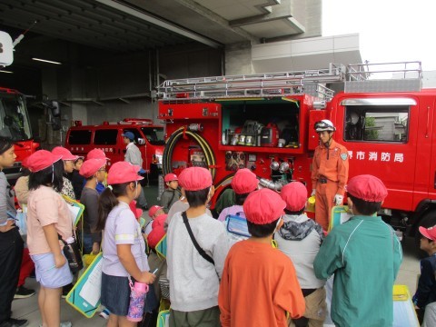 消防署では、訓練の様子を見せていただいたり、実際に使っている道具を背負わせていただいたりするなど、貴重な体験をさせていただきました。