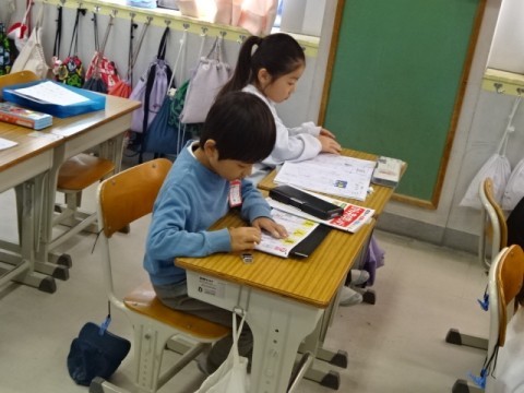 国語では「まちがいを なおそう」の学習をしています。文章の中から「は」「わ」「へ」「え」「を」「お」の表記の間違いを見つけて正しく書くことに取り組みました。