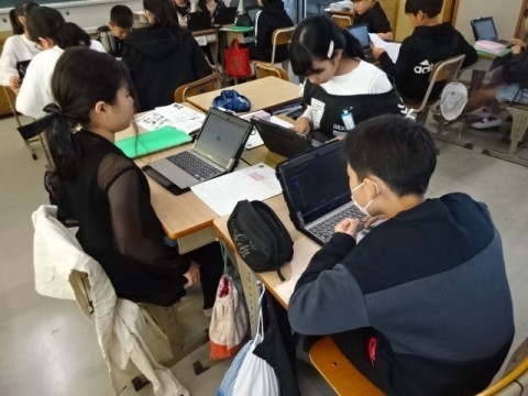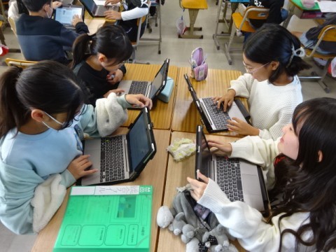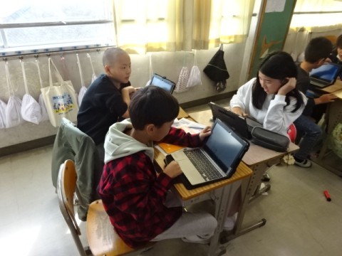 総合的な学習で一人ひとりが調べてきた外国について,発表に向けてグループでパワーポイントにまとめていきました。