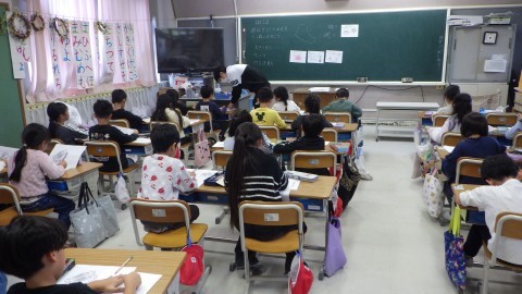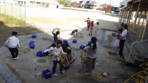 生活科で育てたアサガオのつるは,各自で集めて図工のリース作りに使います。