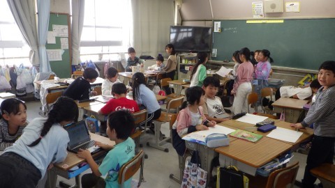 国語では,おすすめの本をグループで1冊決めて,それを低学年の人たちに紹介しに行くようです。