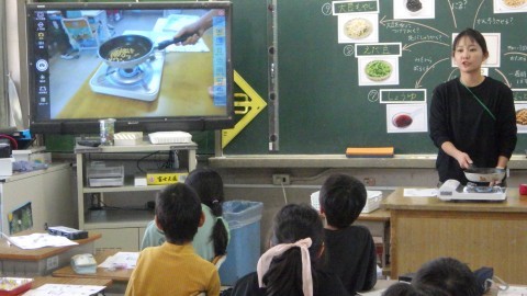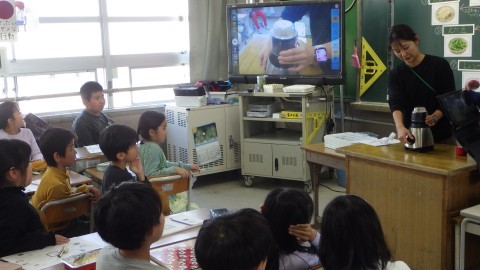 3年生の国語の説明文「すがたをかえる大豆」の学習に関連して,大豆でできたいろいろな食べ方について,栄養教諭の先生が授業をしてくださりました。