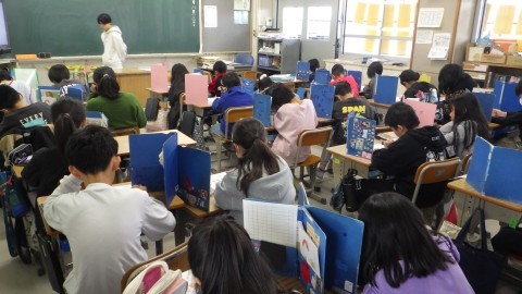 算数では,「平均」のテストをしたり,「単位量あたりの大きさ」の導入場面でこみぐあいについて話し合ったりしていました。