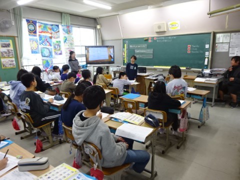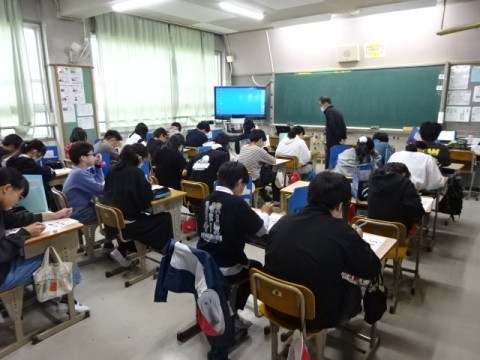外国語の学習で自分の将来について考えるために職業ワークシートへの記入に取り組みました。自分が選んだ商業についてクイズを出し合いました。