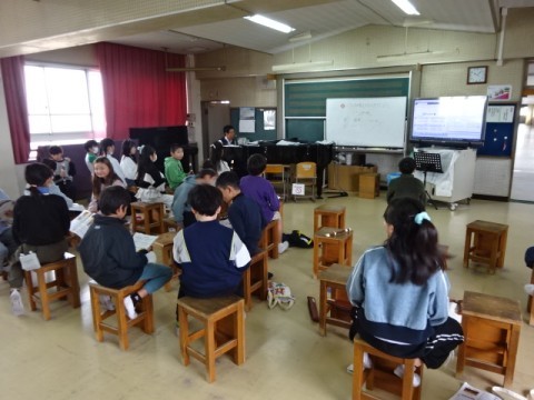 音楽では「ごんぎつね」の話を朗読,リコーダー,歌を組み合わせて,バランスを考えながら演奏することに取り組みました。