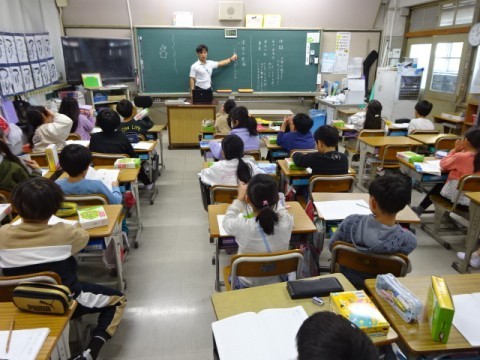 理科では「光のせいしつ」の学習をしています。虫眼鏡で日光を集めるとどうなるかを運動場で実験し,教室に戻ってみんなで確認しました。
