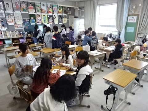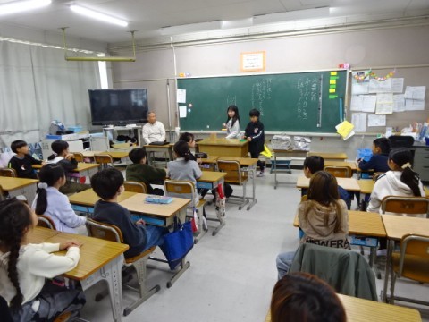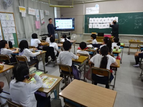 外国語活動でNSの先生と一緒に学習しました。NSの先生と一緒に元気よくアルファベットを順番に一つずつ発音しました。
