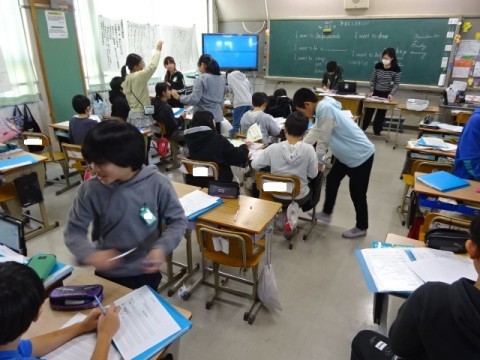 外国語の学習では,「夢宣言」(将来の職業)についてスピーチの内容の確認と練習を交流の形式で進めました。
