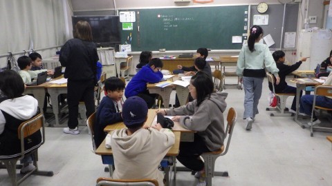社会では,「大和川のつけかえ」の学習で,グループで調べたことをまとめようとしていました。