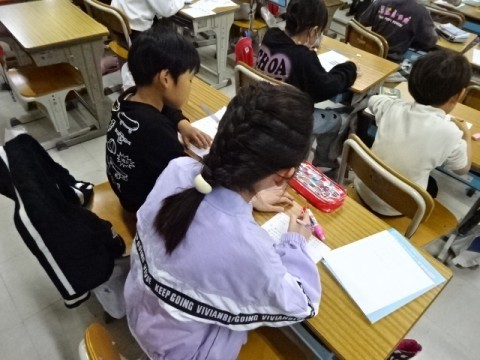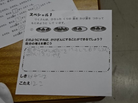 算数で「かけ算」の学習をしています。これまで学習した九九についてプリントで練習問題に取り組みました。スペシャル問題にもチャレンジしました。