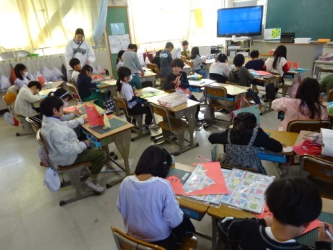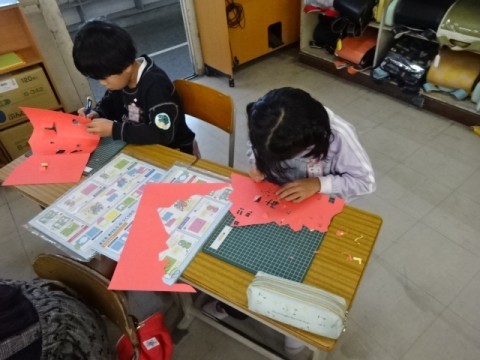 図工では「まどをあけたら」の作品づくりに取り組んでいます。カッターを使って窓の形に切り,その窓から覗いてみました。