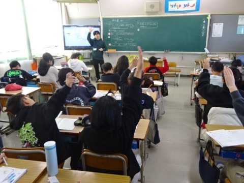 算数で「単位量あたりの大きさ」の学習をしています。「速さ」と「時間」から「道のり」を求めたり,「速さ」と「道のり」から「時間」を求めたりしました。