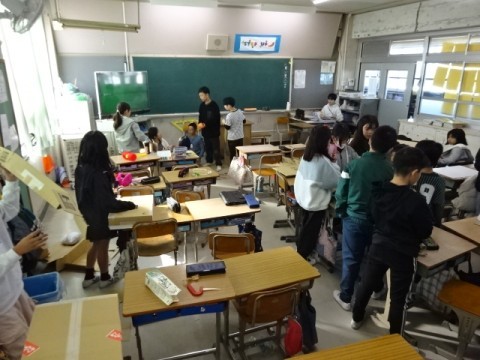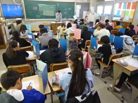 算数で「単位量あたりの大きさ」のテストをしました。次の単元は「四角形と三角形の面積」です。平行四辺形の面積の求め方を考えました。平行四辺形を切ったり動かしたりして長方形や正方形にすることで答えをだせることが分かりました。