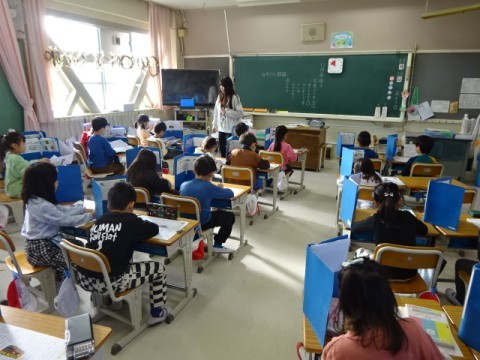 国語で「じどう車じてん」が完成して「じどう車くらべ」のテストをしました。次は「かたかなを かこう」の学習になります。伸ばす「ー」が入っている言葉を集めました。