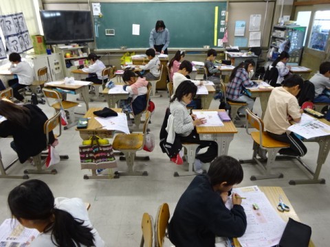国語で「すがたをかえる大豆」のテストをしました。次は「三年とうげ」の学習です。第一場面をくわしく読み取っていきました。
