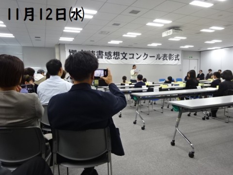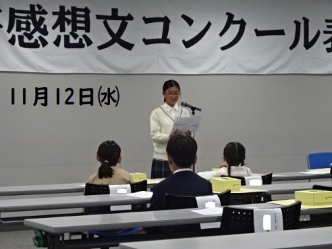 表彰が2つありました。そのうちの1つ,堺市読書感想文コンクールの表彰では,11月12日(水)におこなわれた堺市の表彰式において高学年代表(特選)で朗読した6年生の児童に同じように読書感想文を朗読してもらいました。