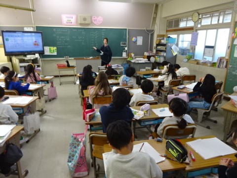算数で「かけ算」の学習をしています。9の段の九九の構成の仕方について考えたり,1の段の九九について九九表をもとにして構成を考えたりしました。