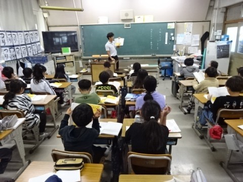 国語では「三年とうげ」の学習をしています。おじいさんの気持ちの変化を読み取り,みんなで確認していきました。また,このお話の中で自分が一番好きなところを決め,好きな理由も考えました。