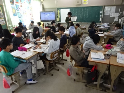 算数ではこれまでの学習を振り返り,班の中で模造紙にまとめていく問題を決めました。今後,その決めた問題について複数の解き方・考え方を班でまとめ,授業を担当します。
