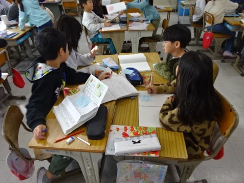 国語で「みきのたからもの」の学習をしています。お話の中から好きな場面を選んで交流しました。