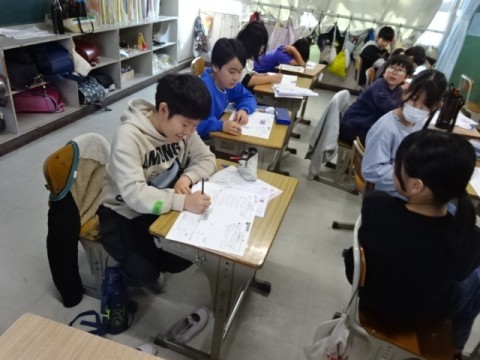 算数で「考える力をつける問題」プリントに挑戦しました。かなり悩みながら難易度の高い問題を解いていきました。