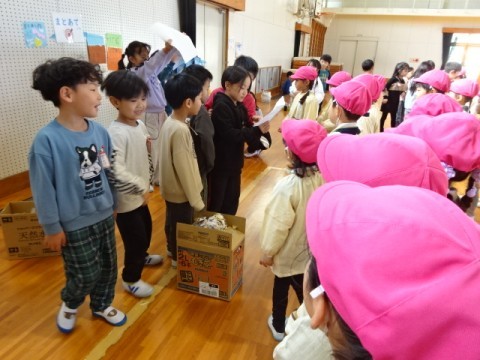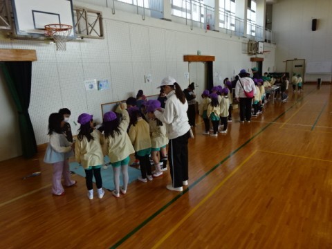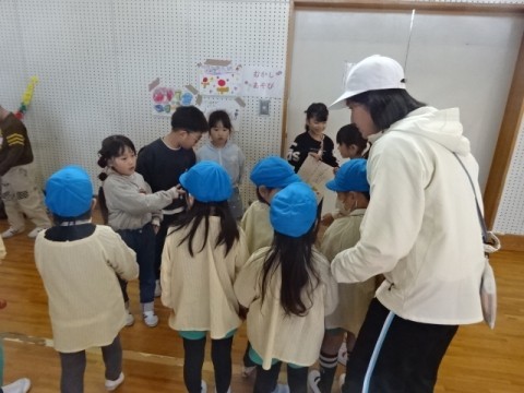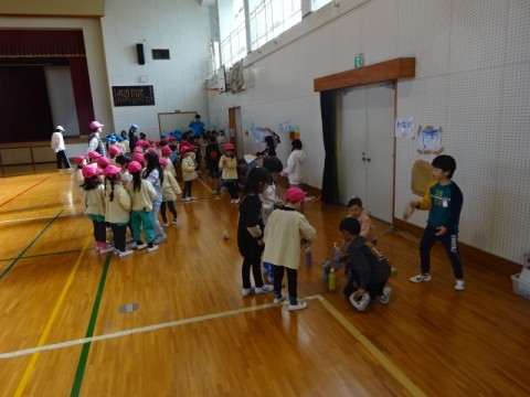 体育館で遊びコーナー「わくわくおもちゃランド」で楽しみました。