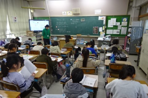 国語で「わたしの町のよいところ」の学習をしています。向丘の良いところを考えて出し合い,紹介する文章を書いていきました。