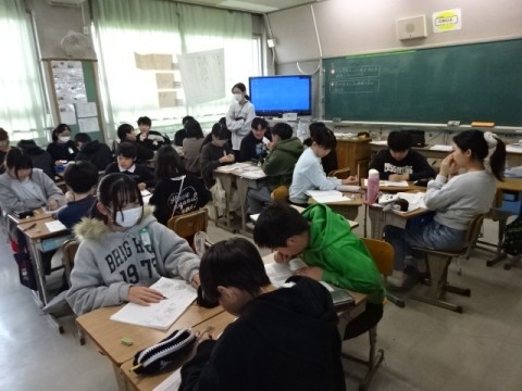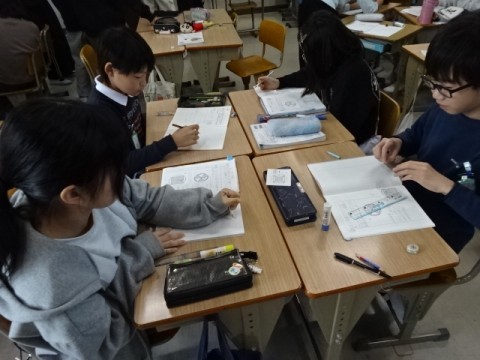 算数では特殊な形の図形の面積を求めていきました。図形を三角形や四角形,円のどの公式をどの部分で使えるかを考えながら答えを求めていきました。