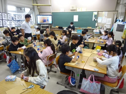 理科で「電気で明かりをつけよう」の学習をしています。これまでの学習を活かして,豆電球や乾電池,回路を使ったおもちゃ作りに取り組みました。