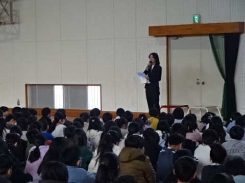 生指担当の先生からは「冬休みの振り返り」「1月の生活目標『学習に必要な持ち物をそろえよう』」の話がありました。