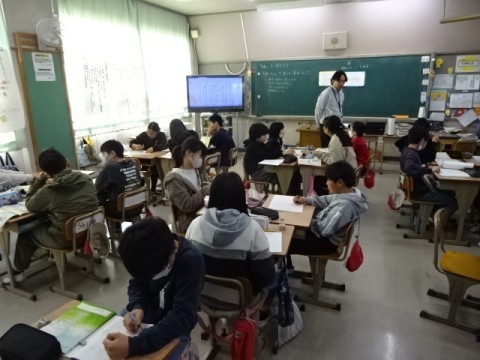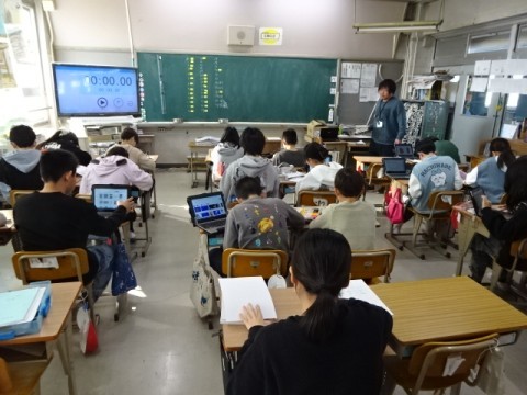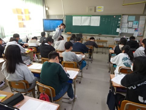 国語で「詩を朗読してしょうかいしよう」の学習をしています。教科書に載っている3つの詩を比喩や反復,リズム等の観点で分析していきました。