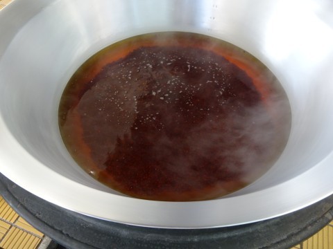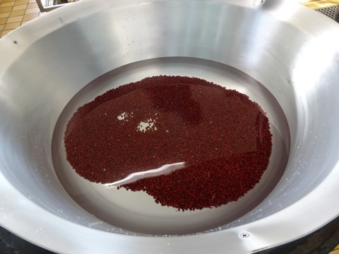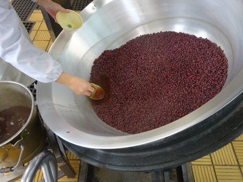 小豆を煮るとだんだんと色が濃くなりました。