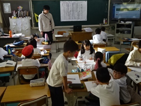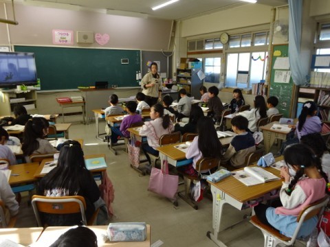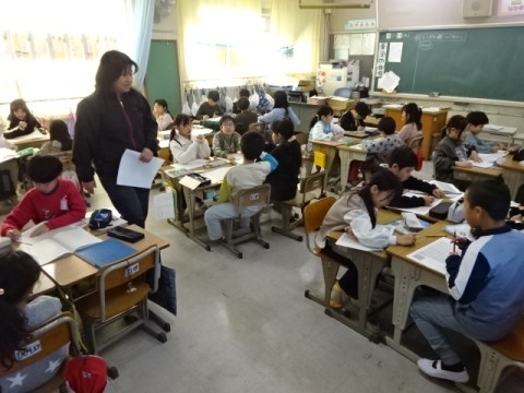 国語で「ことばを楽しもう」の学習をしました。教科書に記載されている回文を全員で声をそろえて何度も繰り返して読んでいきました。