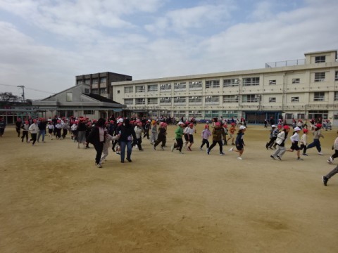 火曜日はナイスランニングの日です。今日も子どもたちは音楽が鳴っている間,自分のペースで走り続けました。