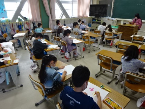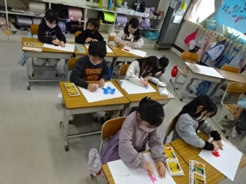 図工では「6年生を送る会」に向けてクレパスで花の絵をかきました。