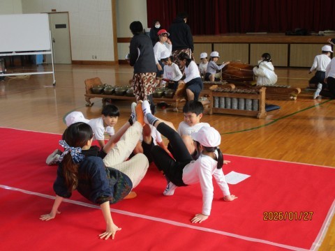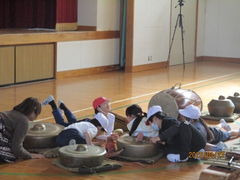 今回も楽器を使ったりからだを動かしたりしながら、グループで思い思いの表現を考え、最後は全員でパフォーマンスをつなげました。