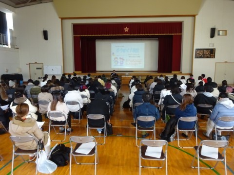 スライドと配布資料をもとに入学までのことや入学してからのこと等について説明しました。