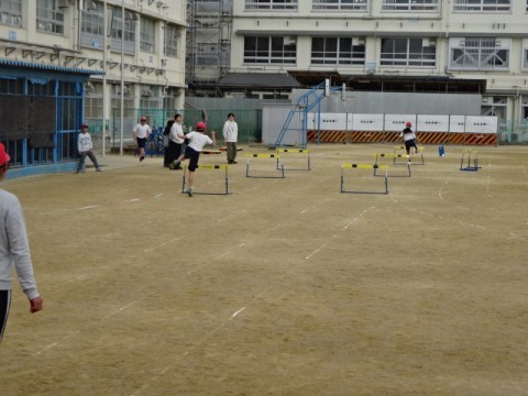 体育では「ハードル走」に取り組んでいます。授業の前に教室で体育カードの準備をしました。授業中の活動では寒い中でしたがしっかりと取り組みました。